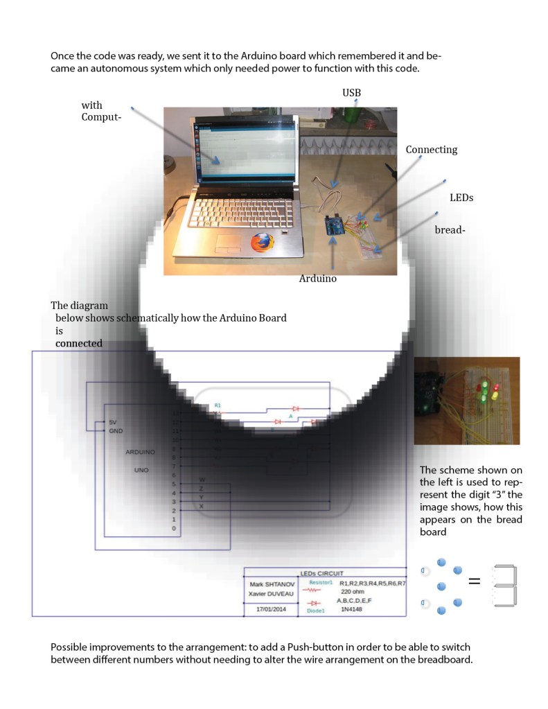 Using the principles we learnt in the Arduino course, Xavier Duveau and myself undertook a study for a simple display showing a particular number.