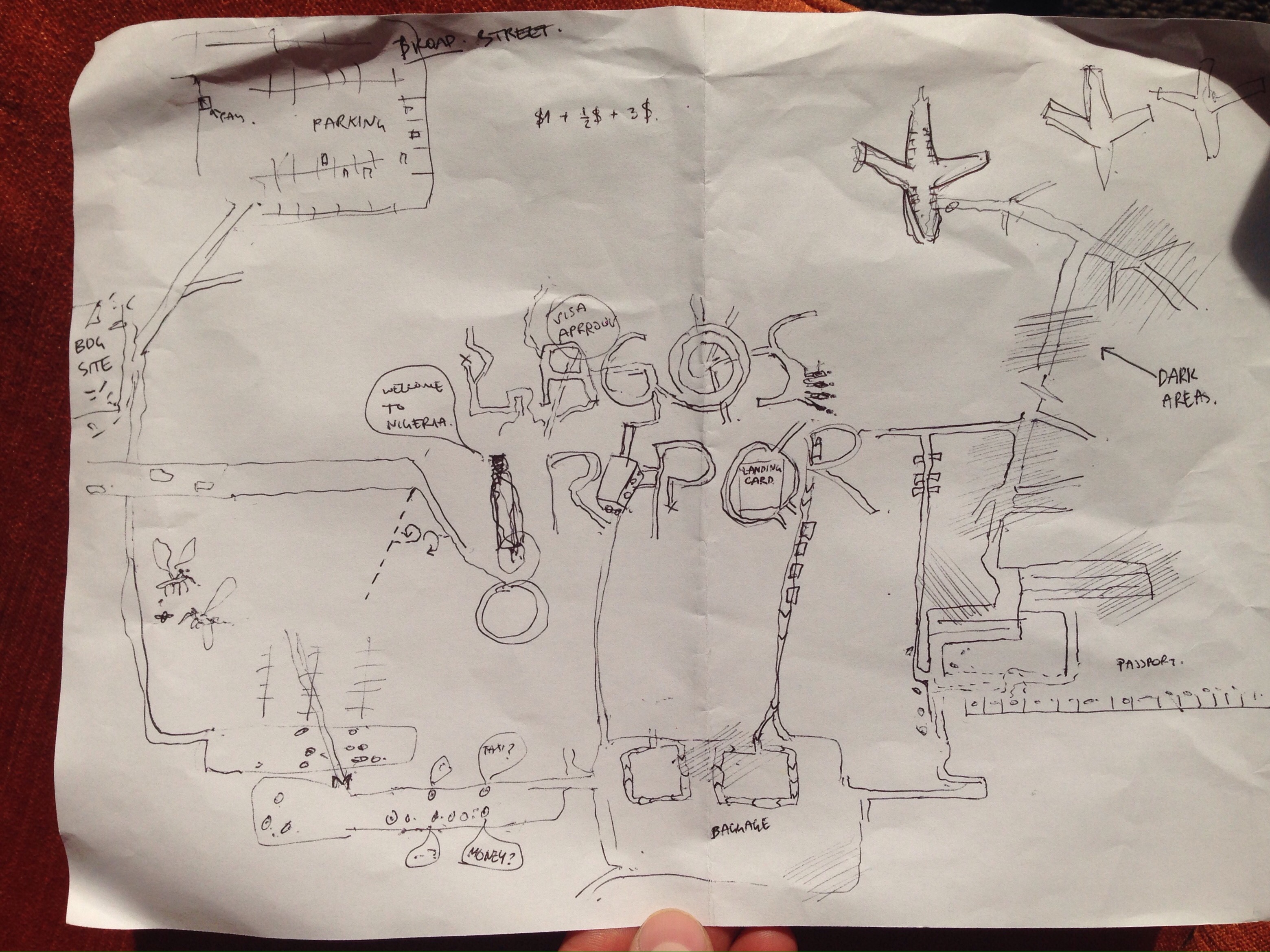 Lagos airport (5:30 am) was a long, partially lit series of narrow spaces (including luggage collection and passport control) with highly interrogating people in uniform of all shades of officialness.