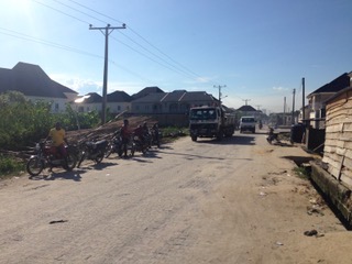 Below: motorbikes and other commercial transport taxed by an indigenous group along a residential Lekki road.