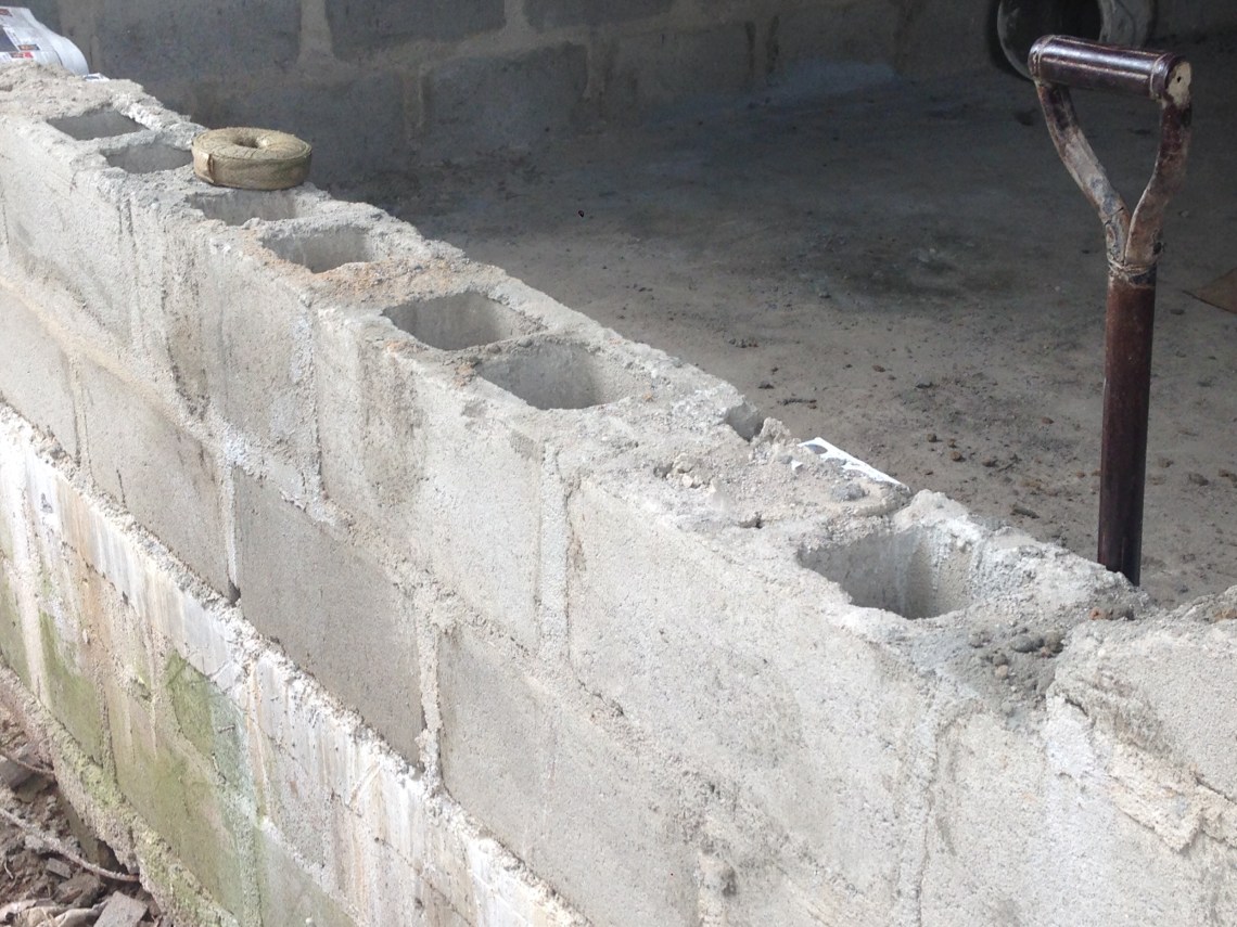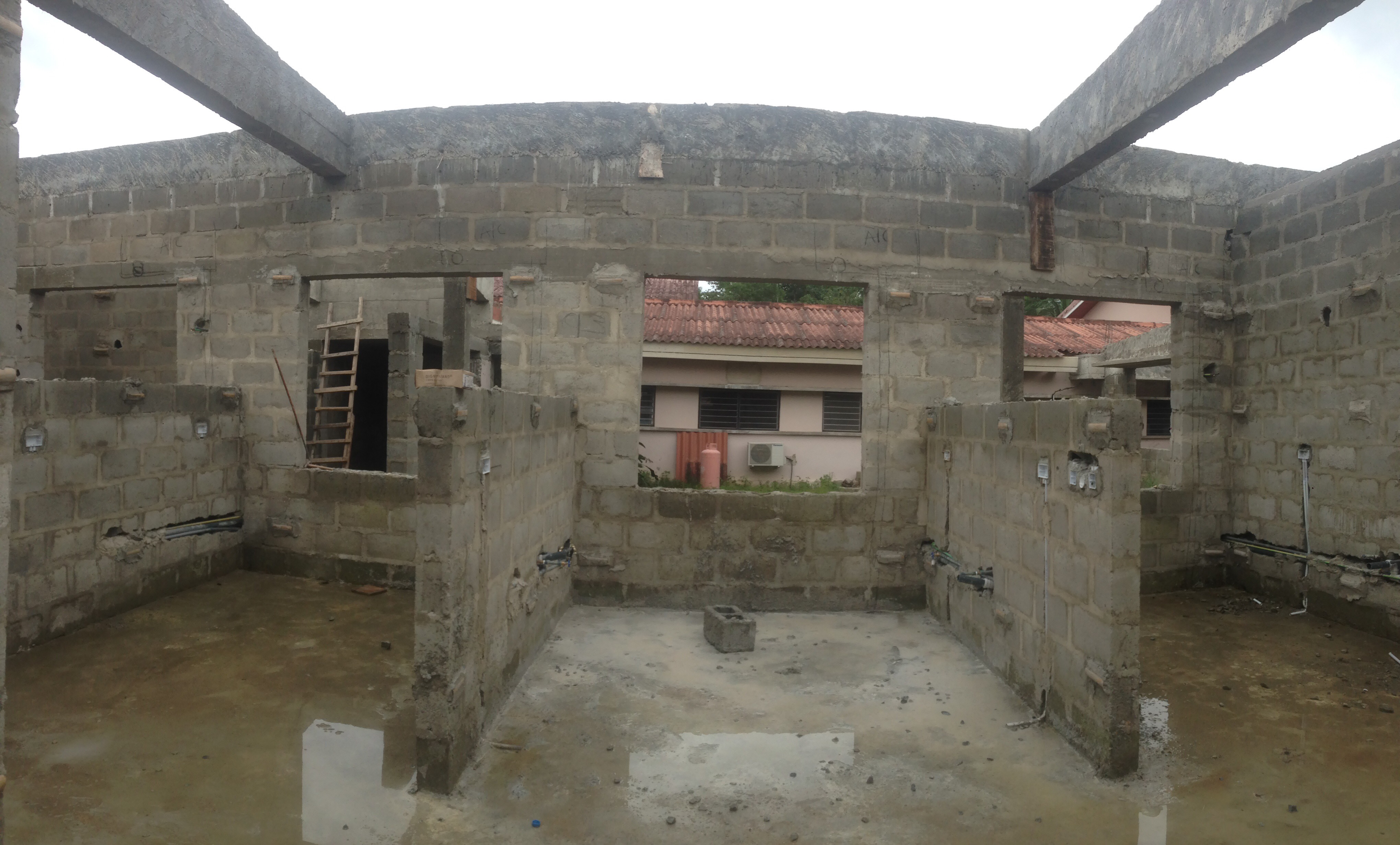 Below: new practice kitchens under construction with the typical block 17 inch long with two cut outs.