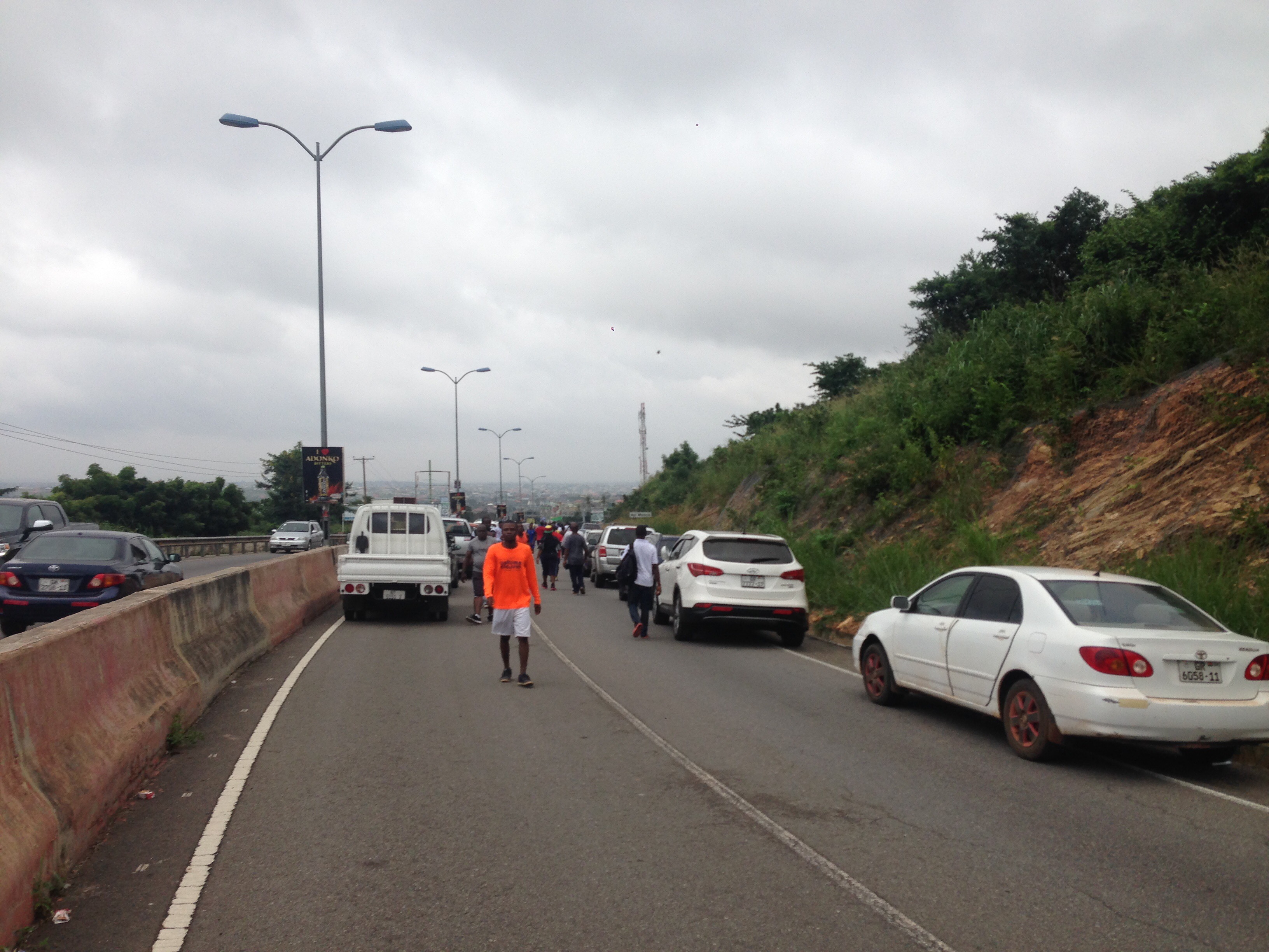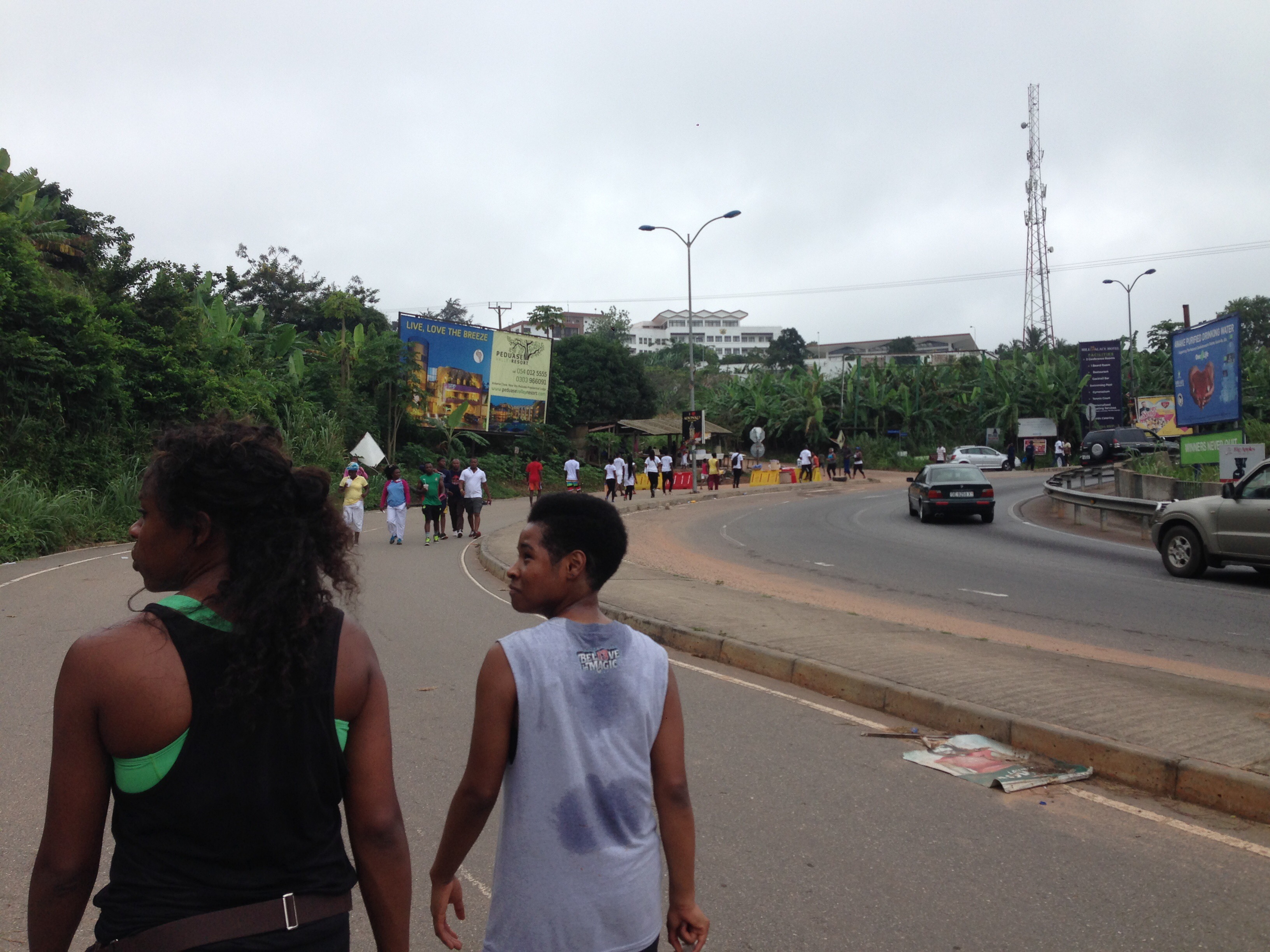 This morning I was at the border of the greater Accra region. Two years ago the Ghanian president started the tradition of running or walking up a 3 km hill and having some form of elevation at the top, usually involving some palm wine. This takes place early in the morning each Saturday.