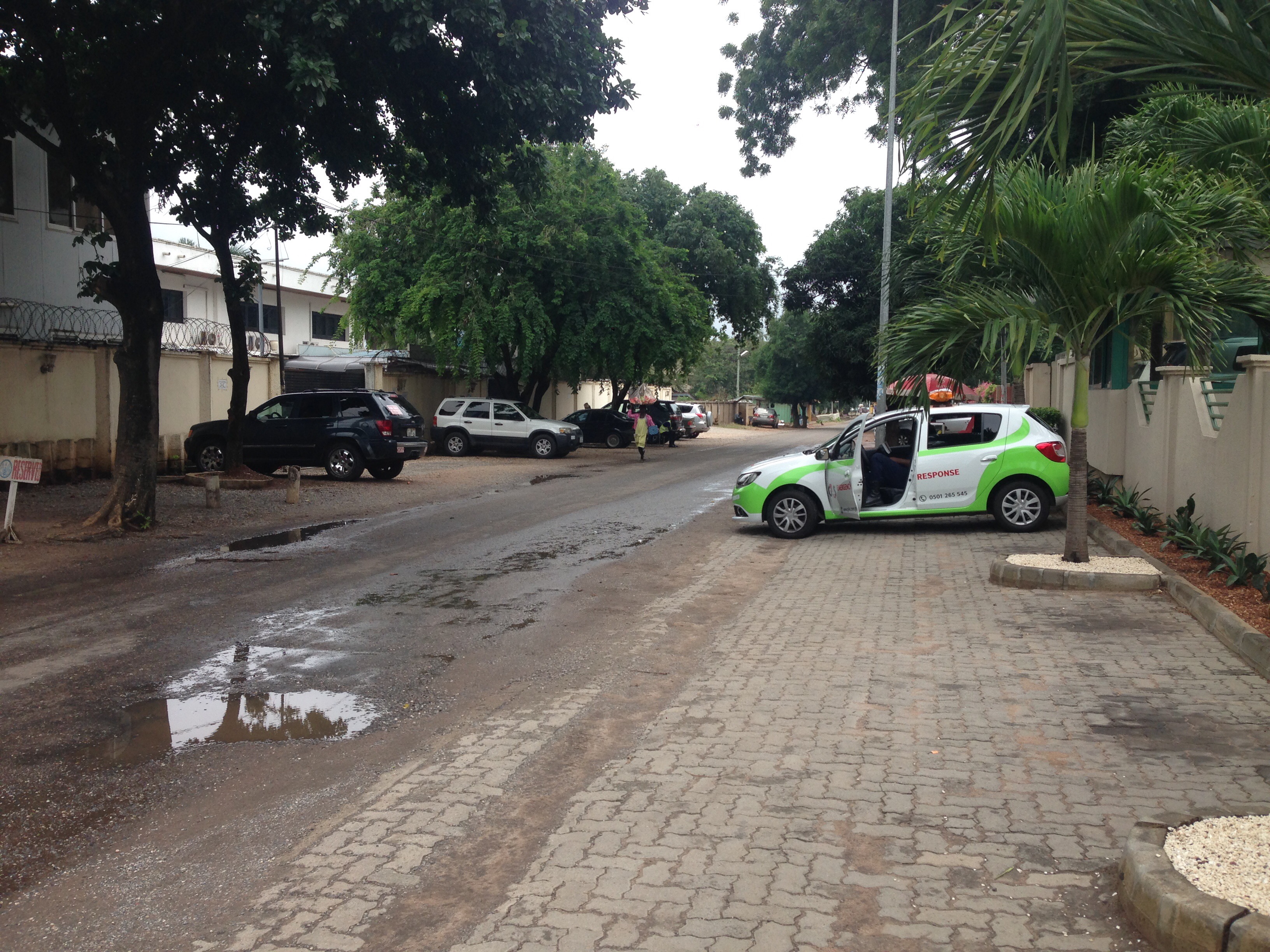 Below: hotel and street in an affluent area outside Danish embassy (where the first site was attended)