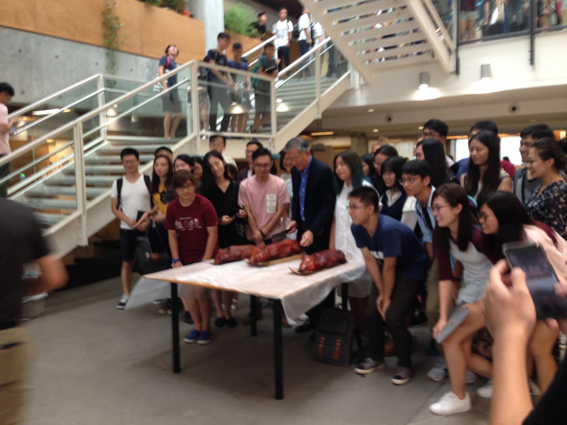 Above: Head of CUHK achitecture school cutting roasted pigs at the year opening day. Below: masters design studio on day 1