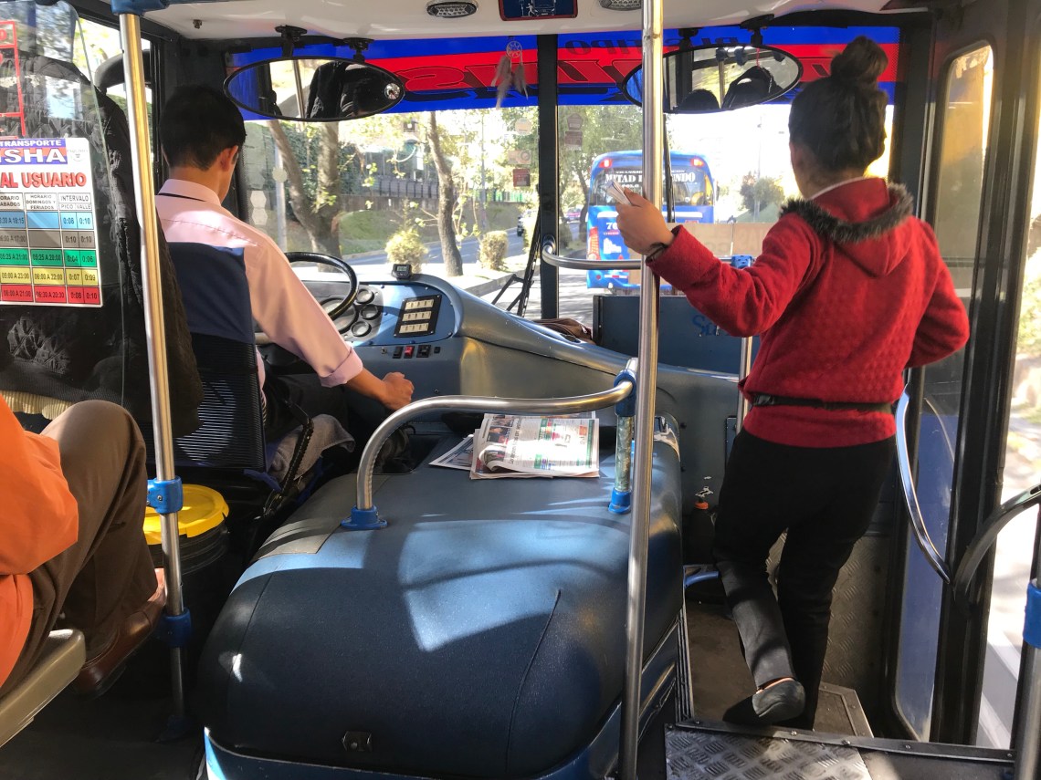 Instead of being assigned numbers buses are identified by plates with stop names (sometimes accompanied by information yelled out by the conductor hanging out of the front door), some buses have route names such as ‘Transurbano’.