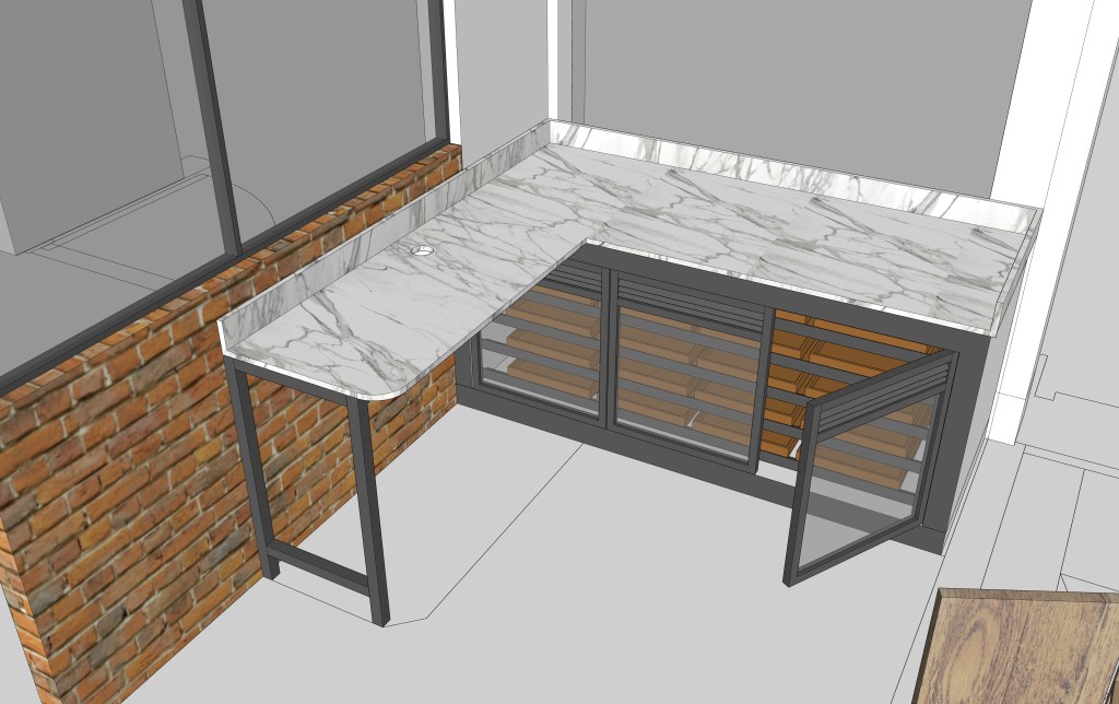 As with other restaurants, I was involved in all stages of design, working directly with the restaurant’s founder, writing the brief and assisting in hiring the other designers and engineers for the job. In terms of drawings, I took a leading role on some of the bespoke complex features, such as the pasta cabinet corner (pictured)