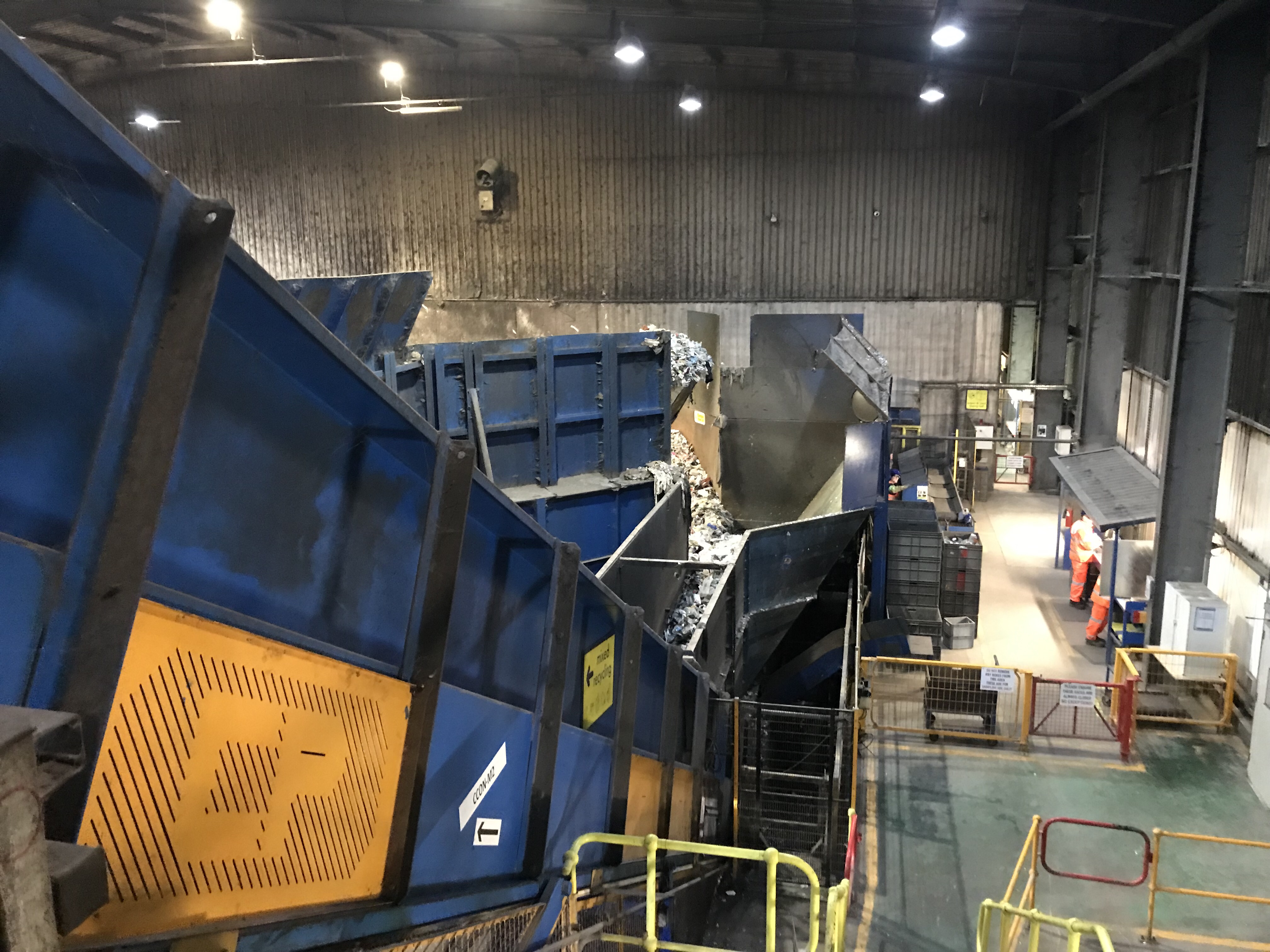Compared to other MRFs, the waste stream here may appear ‘dirtier’. This is due to paper not forming part of the waste stream. The principles of this MRF operation are typical to the other facilities of its kind: the material is loaded onto conveyor belt and subsequently split into fractions using magnets, eddy currents, optical separators, glass crushers, manual sorting, and other methods and technologies. The useful fractions are sold to recycling companies, whereas the residual waste is sent to Runcorn EfW in Cheshire.