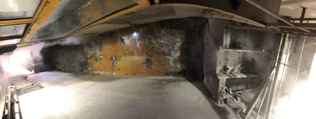 Murphy’s and Ratje’s history of the waste incinerator, starts with late 19c and early 20c models. At the time, un-sorted domestic waste and animal corpses were burnt without any fume filtration, resulting in unpleasant smells, acid rain and illnesses to the nearby residents. Today, the energy from waste technology has become significantly more complex and sustainable. Today I visited two Suez Energy-from-Waste Plants near Middlesbrough, Lines 1, 2 and 3 at Tees Valley (STV) and the two lines at Wilton International. The notes and images below summarise the key stages of the process, which is similar on both sites, as well as in most other EfW facilities.