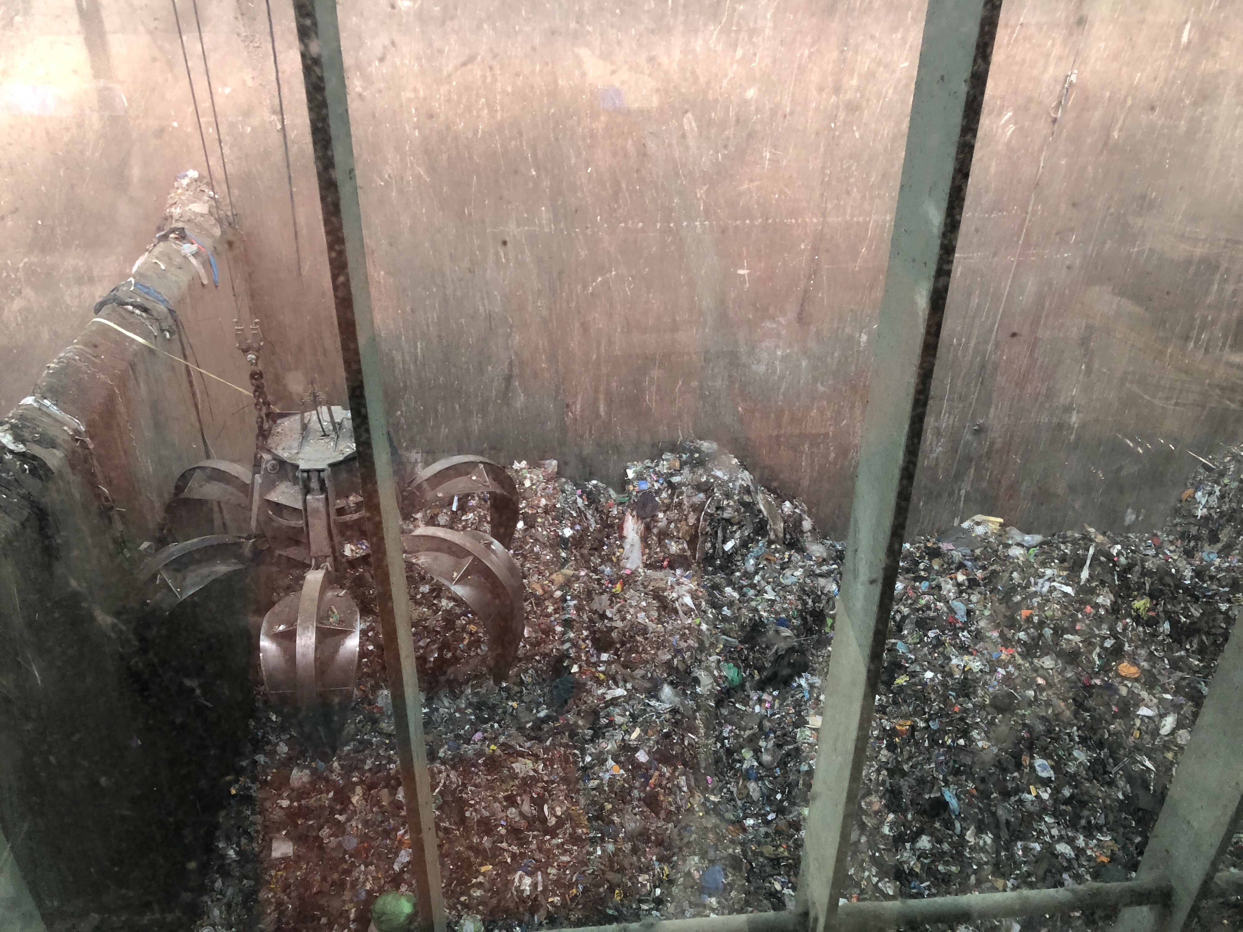 4 . After the lowest stage of the grate, the waste ashes are cooled down with water. The bottom ash is taken to a processing facility, where it is used to make aggregate. At Lines 1,2 and 3, the bottom ash is transported in trucks and at Wilton it is taken on a conveyor belt.