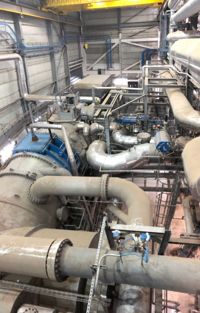 At Wilton, the turbine has a valve permitting some of the steam to be redirected away from the turbine and supplied to other industrial facilities at Wilton International. According to the EfW plant’s staff, the steam travels further than 3 km, given all the turnings of the pipes. District heating systems work in similar ways. Given the water leaving the EfW plant, new water is constantly being supplied, making Wilton’s system an ‘open system’.