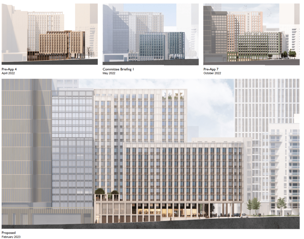 The design was stringently overseen by LLDC – London Legacy Development Corporation. Our team went into several pre-apps, making updates to facades with every iteration. In the finalised proposal, another design firm, Glenn Howells was also involved. Within our team I worked with a director and two further colleagues assisted us. As the scheme was being submitted for planning in 2023, I moved onto other projects.
