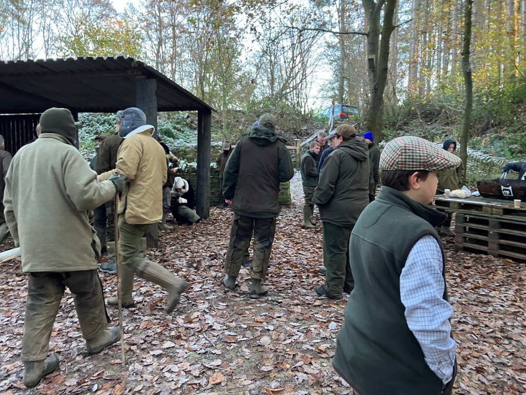 In the summer the shooting captain puts hundreds of new born pheasants in a pen where they’re fed. Once grown to a certain size, the birds are released into the wider wood, where they continue to be regularly fed via large metal corn dispensers. Deer and hares also live in the wood as witnessed by our group on the day.