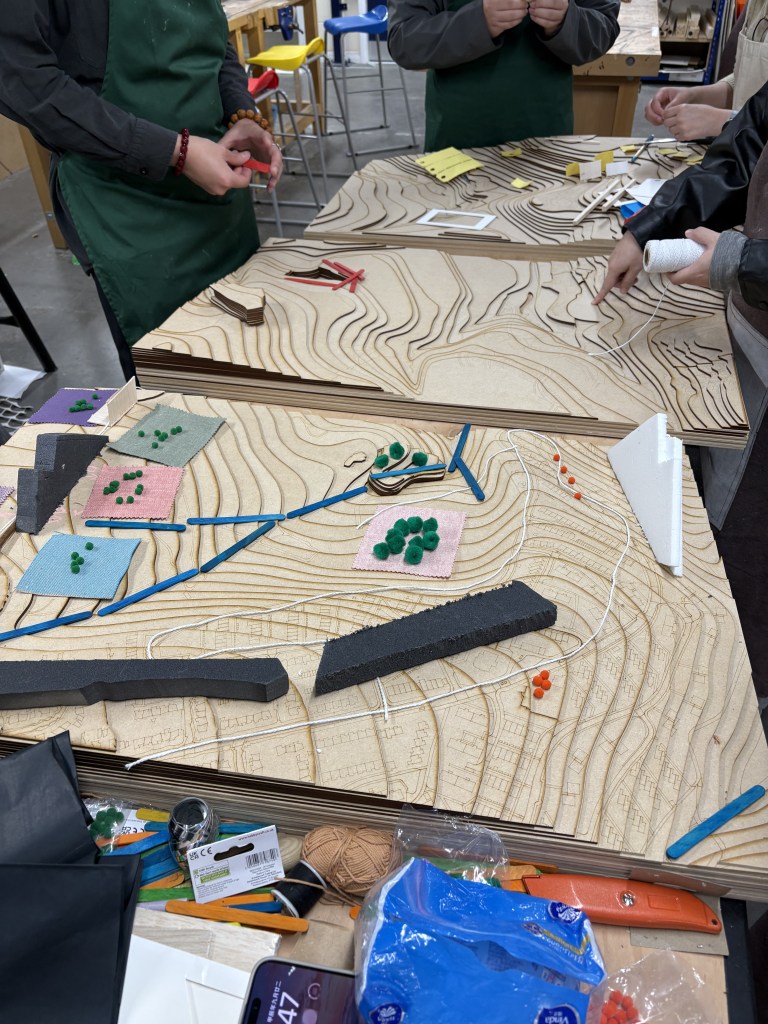 Similarly to my last workshop at Sheffield I worked with a group of students on the Master in Architecture and Urban Design course to develop urban models reacting to particular features of two sites in Sheffield. Having prepared the context models prior to the workshop the students developed storytelling props to discuss their sites’ features with their respective areas’ residents at the community consultation the week subsequent to the workshops.