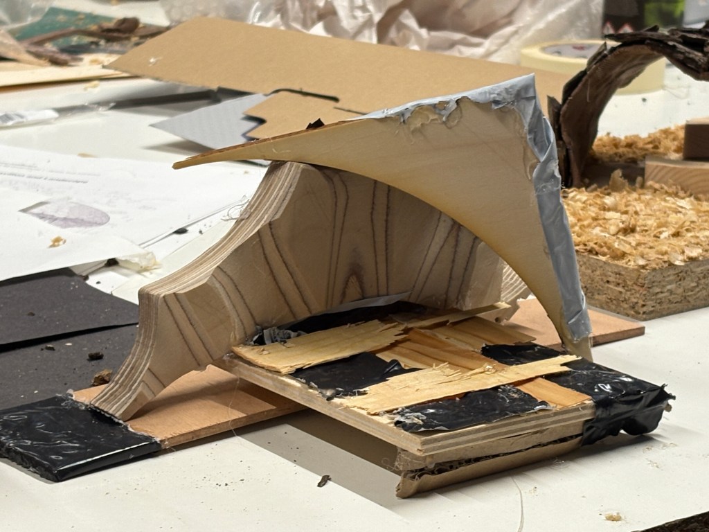 First year architecture students at Bath Spa have been given a new brief to design a pavilion for a craftsperson. The crafts of the fictional clients include printmaking, willow weaving, carpentry, screen printing and ceramics.