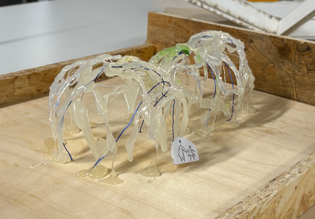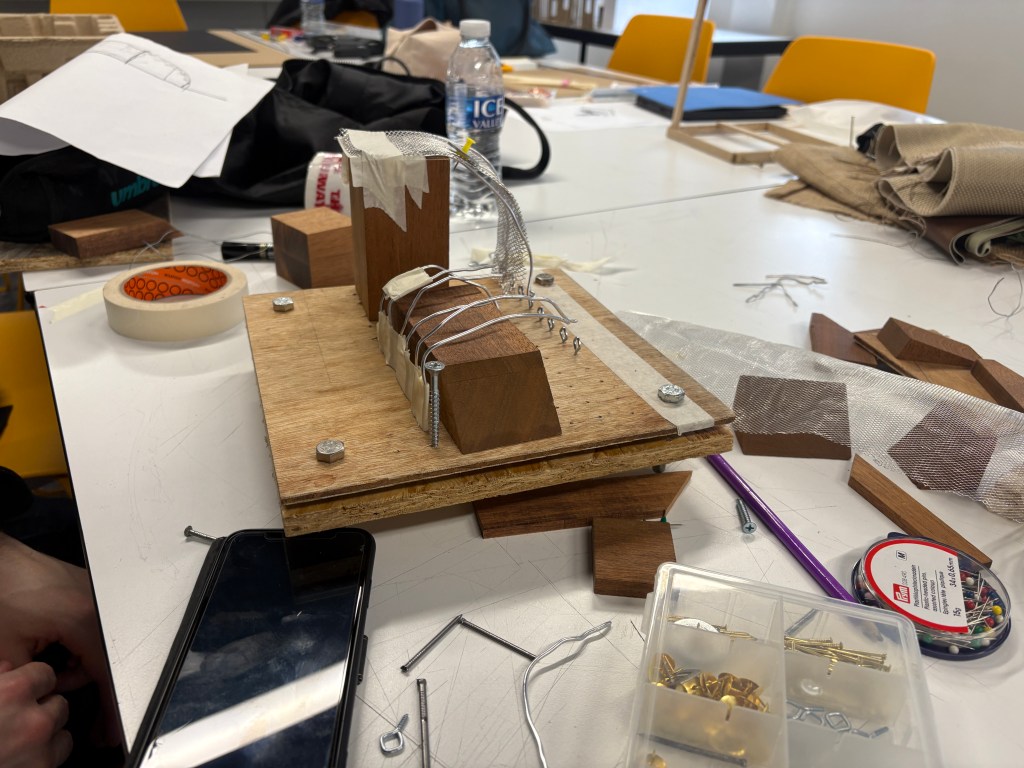 During the workshop these were put to the test of a hand-made model, a vehicle for examining the practicality of executing the design in real world conditions. Some of the schemes imitated the ‘layering’ technique of a 3D printer, whilst others investigated the parametric performance of real life materials, such as fabrics.