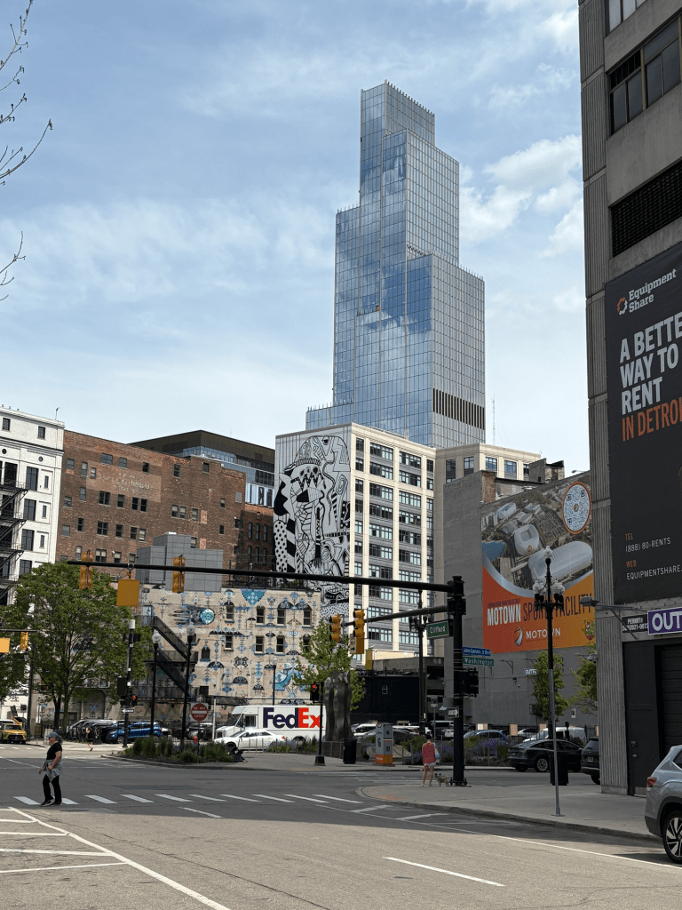 Detroit’s compact busy downtown area is engulfed by a vast suburban area interspersed with mostly empty yet legible streets and vast pothole-punctuated highways. Reminiscent of the auto-industry’s shrinkage, many plots stand empty whereas the public transport is non existent.