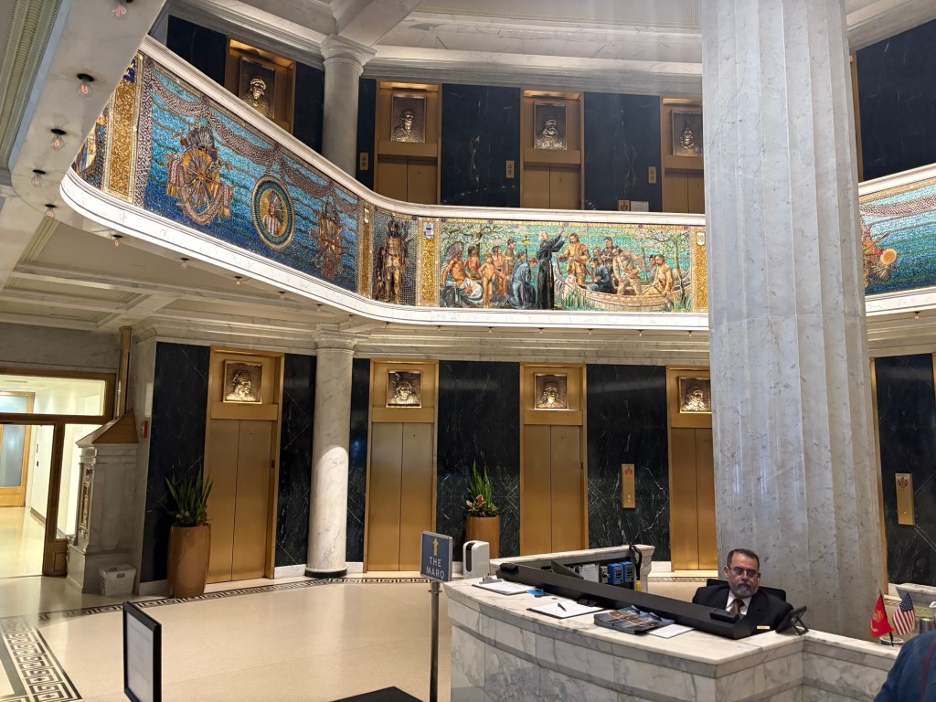Chicago’s difference to most major global cities is in the uniqueness of its architecture. Similarly to Rome or Athens, a building enthusiast comes here to learn about the ‘world’s firsts’, notably the first steel frame skyscraper or its minimalist steel and glass successor, envisaged by Mies van der Rohe. Having learnt about Chicago school during my undergraduate studies at Bath, I was fascinated to see the grandeur of the marble lobbies, hierarchies of column orders differentiating the rank of their bank buildings, mosaics depicting history – peaceful or violent (not sure where the scenes of preaching Christianity to native Americans sit in this spectrum). Gothic cathedral-tops, giant sphinxes, curved mirrors, meatpacking warehouses, and rebellious trespasser of the Lake Drive – Chicago offers skyscrapers of all imaginable typologies.