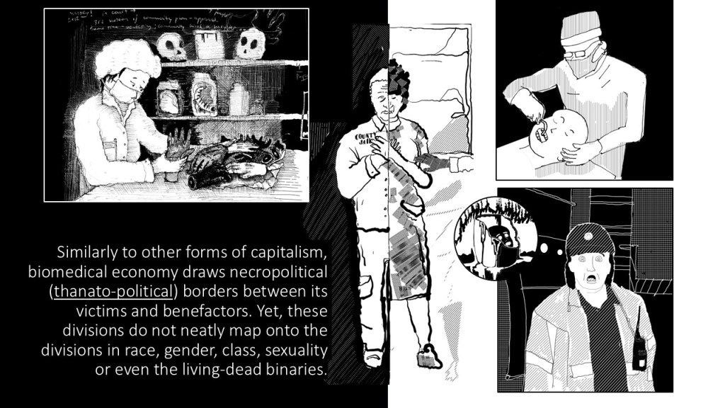 The scientific and economic networks, created by the human tissue economy subvert the conventionally understood distinctions between funerary, mortuary and industrial spaces. Instead, these divergent domains are pieced into clandestine specialist networks.