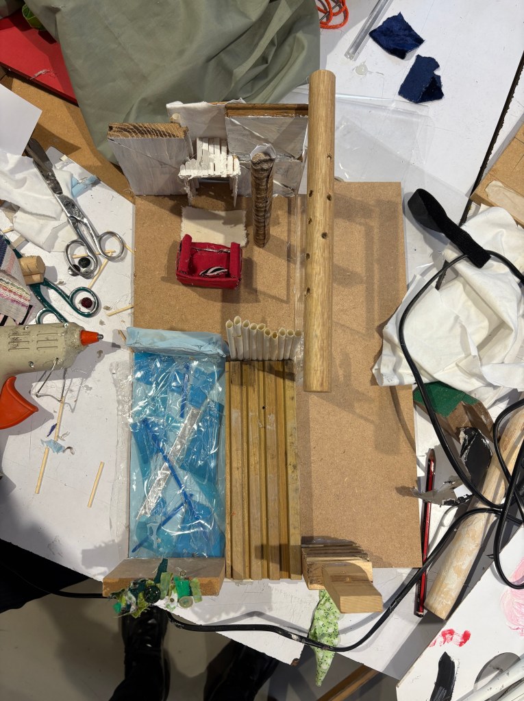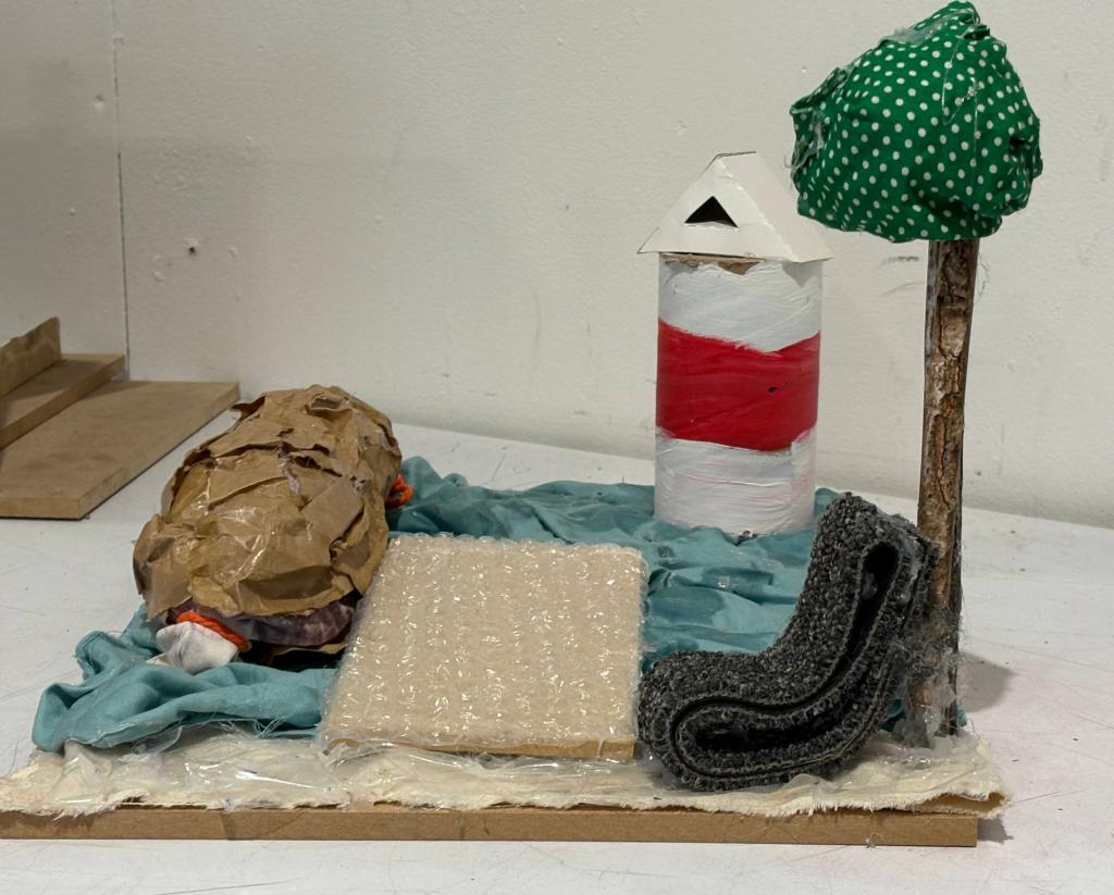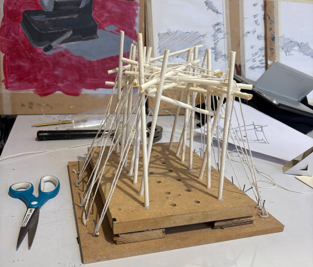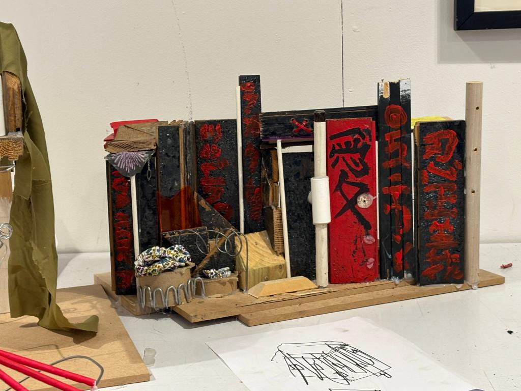 The pupils worked with a diverse palette of materials including different coloured cable ties, metal, treated and untreated wood, fabrics, and wadding. Through intuitive experimentation with these materials, the pupils explored how the essence of their chosen spaces – whether the density of urban Tokyo or the intimate enclosure of a hidden wardrobe niche – could be captured through abstract form, texture, and composition.