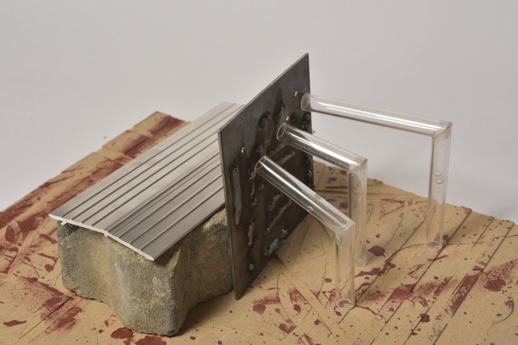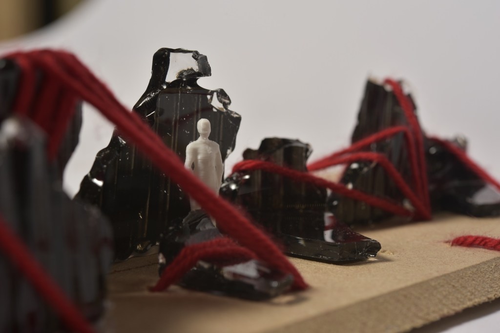 The workshop brief was to develop conceptual models that respond to these complex site conditions. Students worked with broken glass, mild steel, fabrics, wood, and foam.