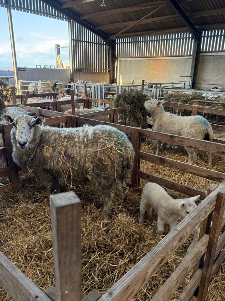 The cycle starts with the Hill breed (a sheep with a dark face and horns) who is inter-bred with a ram, whose breed name escapes me. Their lamb, if female and ‘well behaved’ (not falling ill and keeping at peace with other sheep and the farmer) is kept for several years for mating with a Texel ram – a muscular and high quality meat breed from continental Europe, popular for interbreeding with local British sheep. The lambs from this mating are sold at auctions to be butchered for meat.